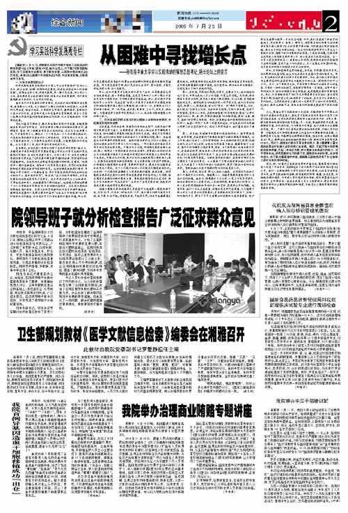 人民网 | 新华网 | 中华人民共和国国家卫生健康委员会 | 中华人民共和国教育部 | 湖南省政府 | 红网 | 湖南省卫生健康委员会 | 湖南省教育厅 | 中南大学 | 湘雅医学院 | 湘雅医院 | 湘雅二医院 | 协和医院 | 华西医院 | 西京医院 | 瑞金医院 | 复旦中山医院 | 武汉同济医院 | 中山医院