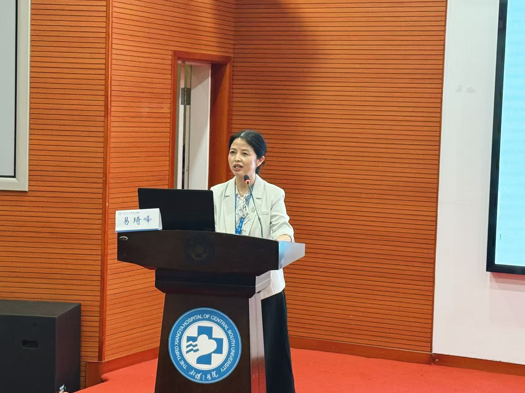 严谨首先代表医院致欢迎辞。她向全体学员的到来表示欢迎:“各位同仁的到来,为湘雅三医院的护理团队注入了新的活力与智慧。我们坚信,这不仅仅是一次单向的培训,更是一次携手共进、教学相长的宝贵机遇。”