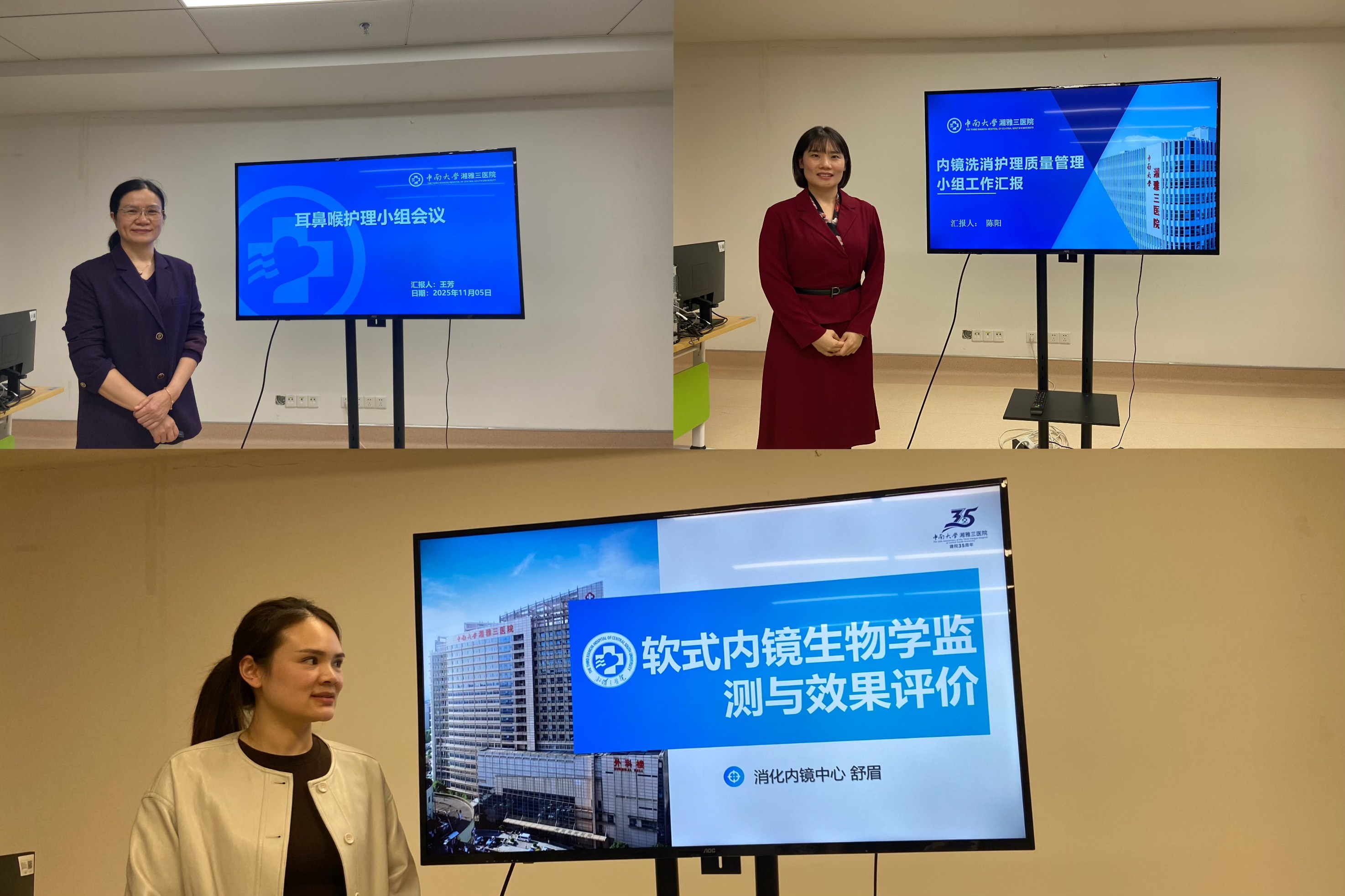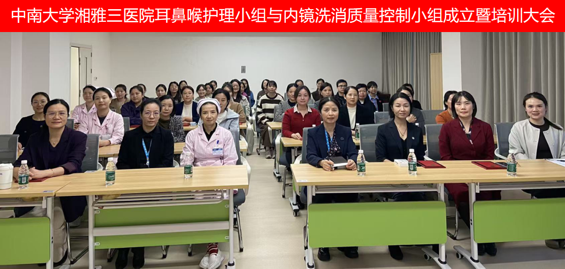 11月5日下午,中南大学湘雅三医院耳鼻喉护理小组与内镜洗消护理质量管理小组成立大会在门诊楼834会议室召开,护理部副主任易琦峰、护理部科护士长夏妙娟、余晓、吴小霞以及两个护理小组的全体成员共同参加,护理部副主任易琦峰主持。