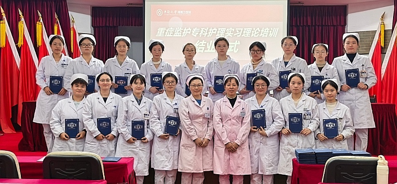 12月3日,中南大学湘雅三医院2025年度重症监护专科护理实习培训班结业仪式在医院急诊楼五楼会议室圆满举行。护理学教研室副主任黄辉、戴婵媛,湘南学院、益阳医学高等专科学校共计56位重症监护专科方向护理实习生参加,戴婵媛主持结业仪式。