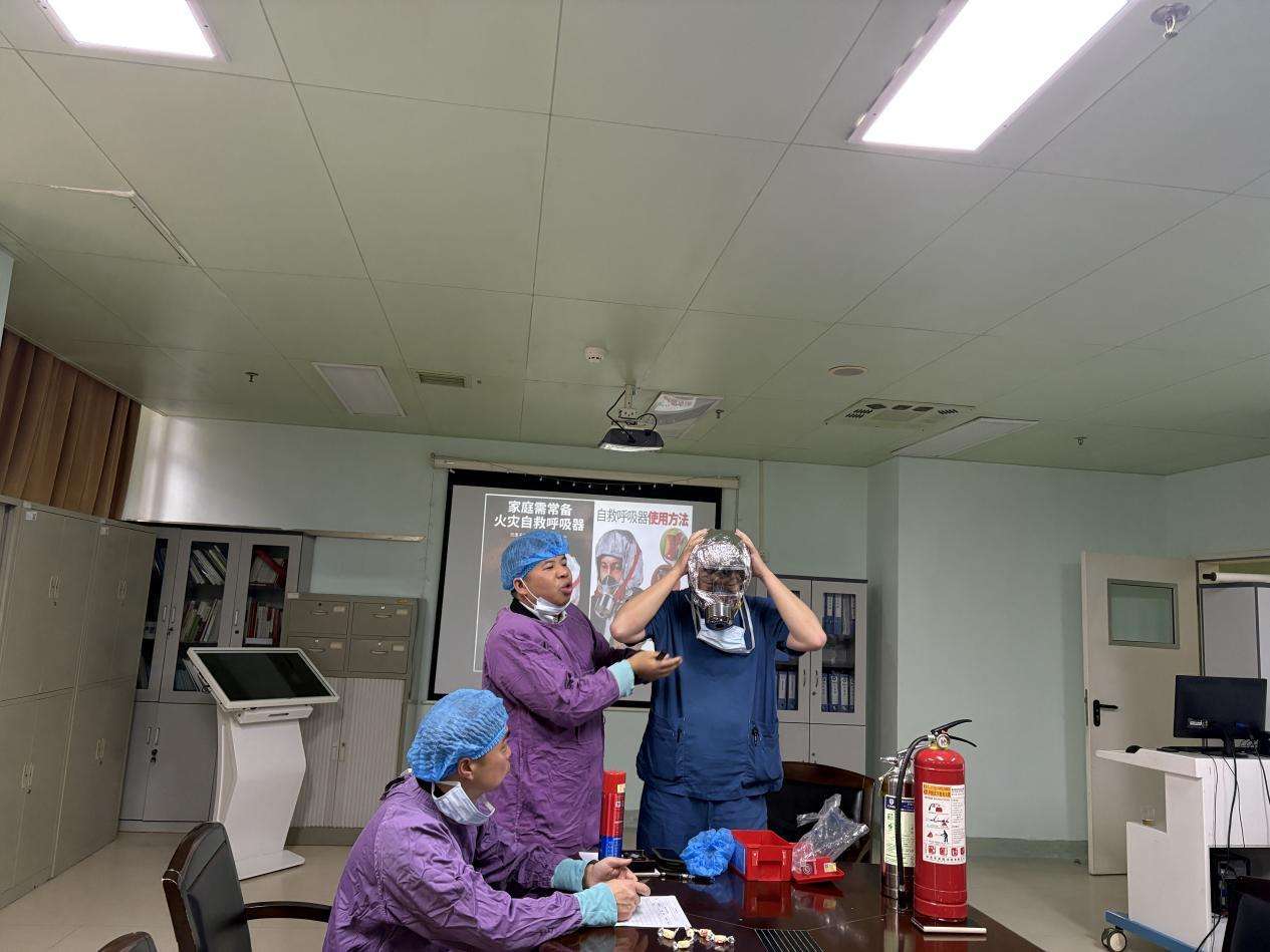 演练开始前,手术中心特邀医院保卫安全办及消防中心专业人员,对手术中心全体人员进行消防培训,重点讲解手术中心特殊环境下的消防器材使用、防烟面罩佩戴、应急照明启用及火灾处置流程、灭火和应急疏散预案的实施等消防安全知识培训,确保每位人员在紧急情况下能迅速、规范地执行预案。