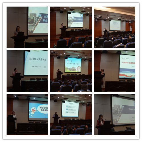 院感中心副主任曾赛男、门诊护士长肖秀珍、40W护士长肖益彩、急诊科护士长肖涛、副护士长郭美英、13W教学组长李德娟、35W教学组长张玲、ICU教学组长刘清平分别针对《护理职业防护》、《患者就诊流程及沟通技巧》、《院内病人安全转运》、《2015心肺复苏指南解读》、《临床护理工作流程》、《常见标本采集及相关知识》、《各类导管护理》等主题,结合丰富的临床经验、有代表的典型案例,用幽默风趣的语言展开精彩讲解与互动。