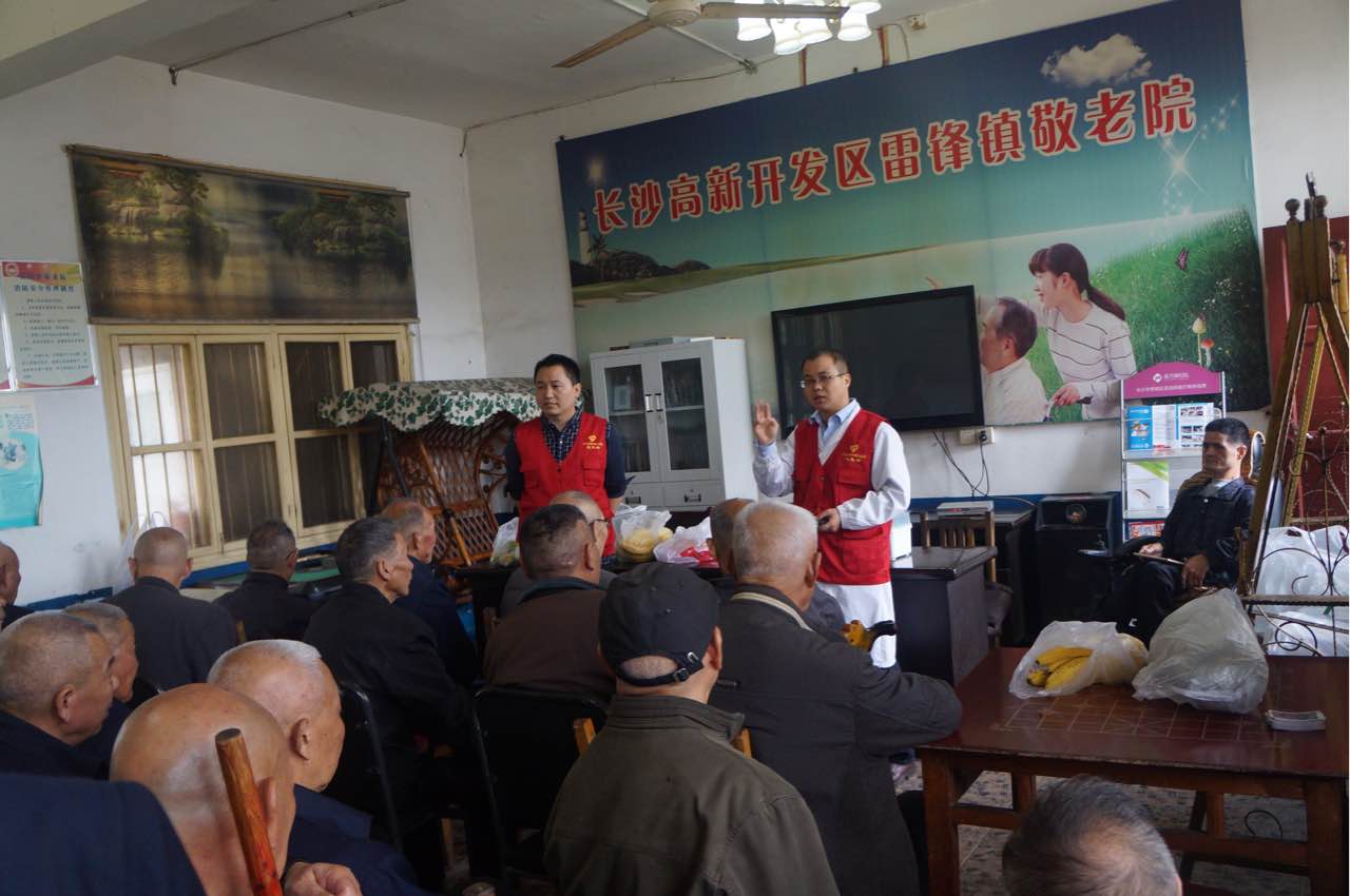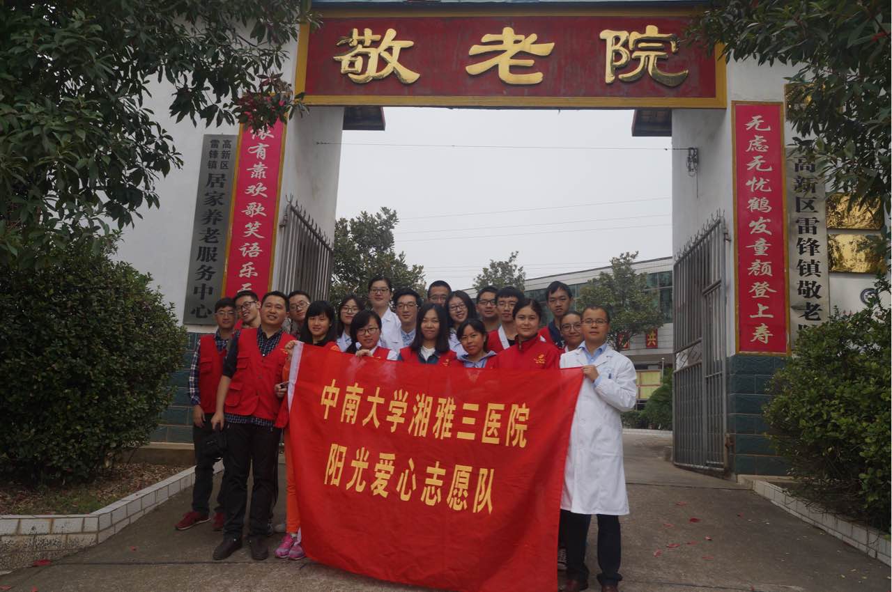 金秋十月,重阳节刚过,为了进一步宣扬传统尊老爱幼的美德,10月15日,中南大学湘雅三医院2013级五年制一组和二组的全体同学在辅导员赵孟文及张晓伟两位老师的带领下前往雷锋镇敬老院进行义务送医送药活动。