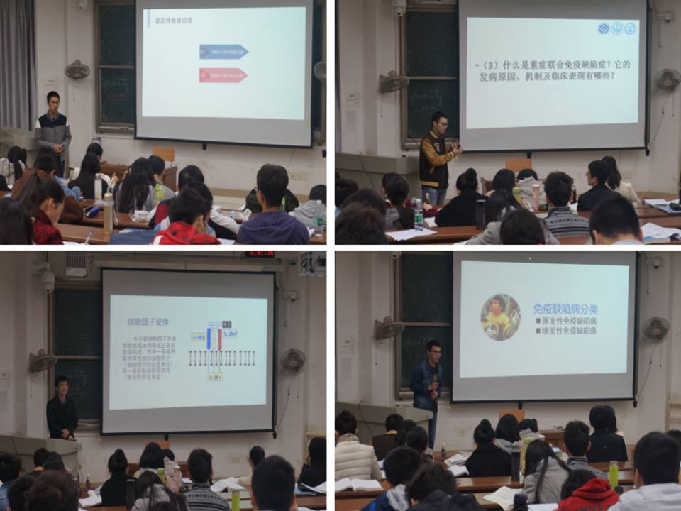 本次报告会以儿科免疫缺陷病为主题,老师依据教学大纲的要求将课程内容拆分为免疫应答、原发性免疫缺陷病临床表现、原发性免疫缺陷病与儿童生长发育之间的关系、原发性免疫缺陷病的诊断、原发性免疫缺陷病的治疗及进展五个方面的内容提前一月分发给五个小组。各小组成员发挥团队协作的精神,分工合作,一部分同学负责文献检索了解最新的知识进展,另外一部分负责幻灯片课件的制作,最终由一名同学负责统筹、协调并登台授课。正式上课前一周,赵玲玲教授牺牲个人休息时间,听取每一位同学的预讲并提出改进意见来保证课程质量。