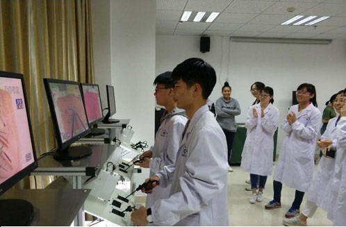腹腔镜作为新兴的医疗服务方式,有着广阔的应用前景。其凭借着以较小的手术切口不落疤痕即可完成手术的优势,已经在较多医疗领取成功取代了旧有的手术方式,掌握腹腔镜技术对于医学生来说是很有必要的。通过游戏竞技的方式,更好地提高了学生们对于腹腔镜的熟悉程度,有利于将来进入临床后迅速熟悉临床氛围,为将来的工作打下坚实的基础。