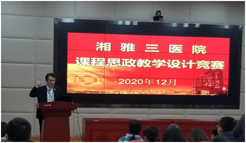 何庆南书记致辞,充分肯定了本次比赛的意义,强调了课程思政和人文培育在医学教育中的重要性,勉励医院全体教师不忘初心,将课程思政实践贯穿始终,落实立德树人,传承湘雅精神,为“培养什么人、怎样培养人、为谁培养人”这一根本性问题交出更好的答卷,培养更多卓越医学人才。