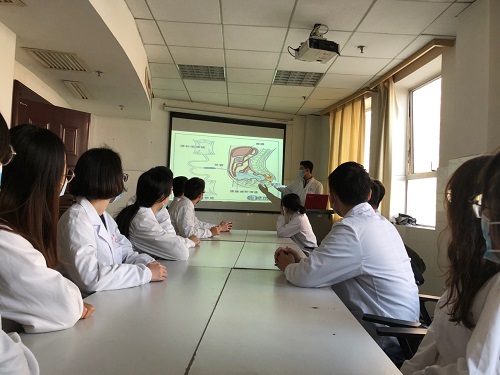 首先,由李柳老师首先简单介绍腹膜透析相关概念,并对腹膜透析分解成3部分内容,交由同学们提前分组进行文献查阅,总结和思考。每组同学进行汇报,包括有腹膜透析前的腹横筋膜平面麻醉TAP,腹膜透析手术方式,腹膜炎的处理。同学们纷纷提出自己的看法和疑惑,李柳老师在和同学们的互动中积极解答同学们的疑惑,也肯定同学们的观点,形成了一种学比赶帮超的学习氛围,也为下一阶段去腹膜透析中心模拟透析奠定了扎实的基础。