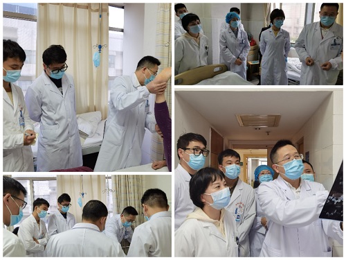 2021年3月-4月,中医学教研室承担了2016级临床医学八年制专业30名同学的主动见习融通教学。为持续改进教学质量,在教研室主任肖岚的带领下,中医科病房带教老师和教研室脱产老师探索了多种新的教学模式,并获得了脊柱外科主任邓幼文团队的大力支持。每周二上午,邓幼文团队和中医科脊柱组团队针对临床医学八年制专业学生开展MDT教学查房。邓幼文给同学们示范病史采集和体格检查,指导同学们阅片;中医科副教授李广诚从中医的病因病机、望闻问切给同学们讲解中医学对疾病的认识;肖岚则向同学们介绍了中医治疗脊柱骨病的特色疗法,以及中、西医如何优势互补,在脊柱骨病的治疗中发挥更好的疗效,为患者排忧解难。