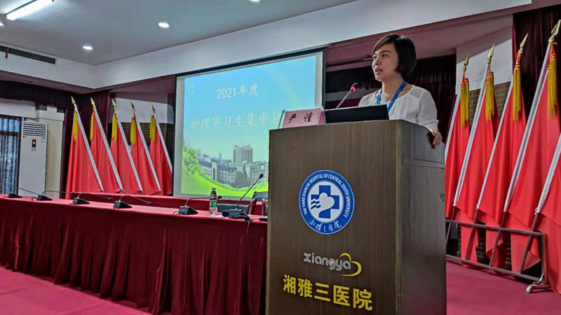 7月8日至9日,中南大学湘雅三医院2021年度全体护理实习生集中培训在门诊五楼进行,由护理教研室副主任黄辉主持。