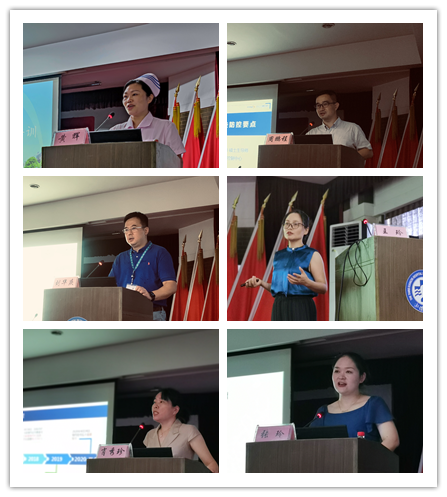 本次集中培训共进行了6场主题讲座的学习。邀请了护理教研室主任毛平、医务部副主任刘华庆、医院感染控制中心副主任周鹏程、门诊护理单元护士长肖秀珍、三十三病区(乳甲外科)护士长王玲、三十五病区移植科主管护师张玲,分别从护理实习管理、护理法律法规与纠纷防范、新冠肺炎防控规范与要求、医院就诊流程与沟通技巧、静疗安全规范、标本采集相关知识等进行精彩讲授。培训后进行了现场考试。