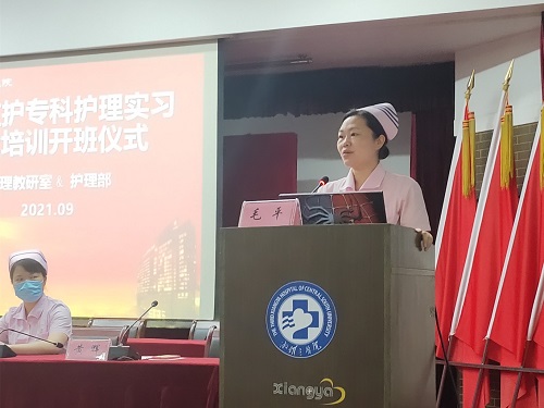 9月8日,中南大学湘雅三医院2021年重症监护专科方向实习培训班开班。护理教研室部分老师、重症监护室护士长何志平、教师代表向飞以及益阳医专47位重症监护专科护理实习学员、2020级18位规范化培训护士参加开班仪式。仪式由护理学教研室副主任黄辉主持。