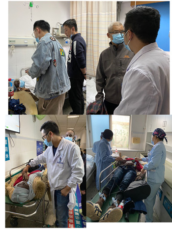 虽然对M同学各项生命体征检测及神经系统初步体查均无明显异常,但张伟讲师了解到M同学既往有慢性肾脏病CKD4期的病史,仍非常担心该学生病情加重或反复,立即带领第5组几位男同学将M同学扶上平车送往急诊科进行进一步诊治,并通知医院教务部及留学生辅导员。教务部负责学生管理的吴建珍副主任以及留学生辅导员接到电话后也迅速赶往急诊室,协助张伟讲师一起完成急诊室就诊和患者照护。
