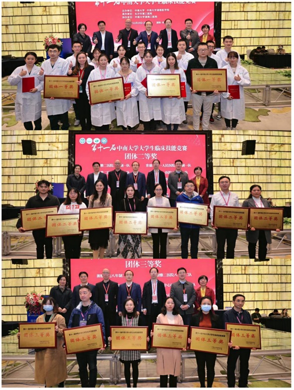 11月19、20日,由中南大学、中南大学湘雅医学院主办,长沙市第三医院承办,中南大学湘雅三医院协办的第十一届中南大学大学生临床技能竞赛在长沙举行。中南大学湘雅三医院在比赛中获“优秀组织奖”,陈依慧、孙逸、陶玲三位同学获个人赛“一等奖”, 张元敏、赵松枫、张华清、陈佳威、王弘熠五位同学获个人赛“三等奖”,五年制一队获团体“一等奖”,八年制二队获团体“二等奖”,八年制一队获团体“三等奖”。