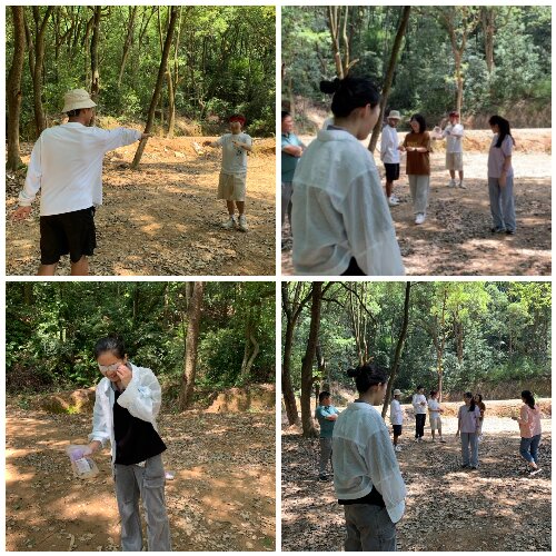 下山后,李明渊老师组织同学们进行了盲人体验小游戏,同学们深刻体会了视力障碍者的不便,但通过同学们的团结协助,能大大减少视力障碍所带来的不便,这也激励同学们要懂得关心、关爱残障人士。