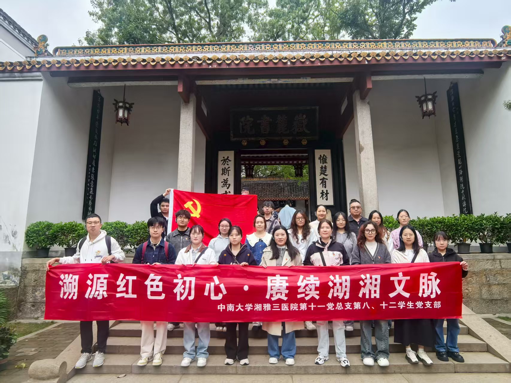 为传承红色基因,弘扬湖湘精神,10月18日,中南大学湘雅三医院第十一党总支组织开展“溯源红色初心·赓续湖湘文脉”主题党日活动。活动通过徒步红色路线与岳麓书院深度研学,将湖湘文化精神与医学使命相融合,引导党员师生追溯革命初心,感悟“改造中国与世界”的使命担当。党总支党建班导师团队及第八、十二学生党支部共20余名党员参加。