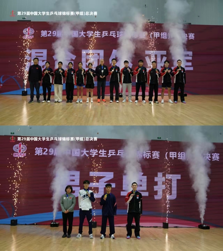 12月5日至7日,汇聚了全国四大赛区前八名共32支顶尖队伍的第29届中国大学生乒乓球锦标赛(甲组)总决赛中,张越强、李冠奇两位同学代表学校再次出战。在混合团体比赛中,他们各司其职,与队友团结协作、力克强敌,最终夺得含金量极高的混合团体全国第二名,创造了中南大学甲组乒乓球队的历史最佳战绩。在高手云集、共计128名选手参赛的男子单打项目中,张越强同学发挥出色,一路过关斩将,最终荣获男子单打全国第三名的辉煌战绩。