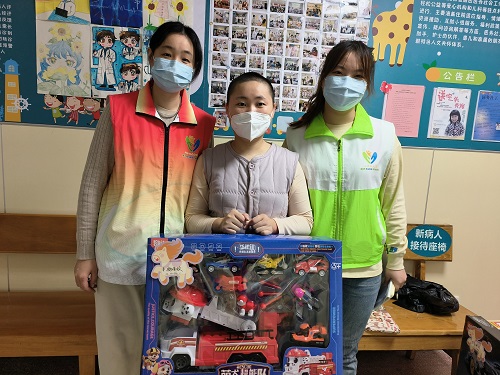 活动现场暖意融融,学生们与志愿者们化身“暖心使者”,为孩子们送上了一份份精心筹备的新年礼物。礼物架上琳琅满目,既有色彩鲜艳的绘本故事书、益智拼图、积木套装等启蒙玩具,也有柔软可爱的毛绒玩偶、造型别致的文具礼盒,还有寓意平安的红色围巾与定制福字贴,每一份礼物都饱含着对孩子们的牵挂与祝福。当学生与志愿者们将礼物递到孩子们手中时,一张张稚嫩的脸庞立刻绽放出灿烂的笑容,眼神里满是惊喜与期待。有的孩子迫不及待地拆开绘本,缠着学生与志愿者讲解故事;有的捧着毛绒玩偶紧紧抱在怀里,脸上洋溢着满足的神情;还有的拿起彩笔,尽情发挥创意,用彩笔勾勒出笑脸、爱心、彩虹等美好图案,将对新年的期盼与对健康的向往倾注于指尖,整个病房里充满了欢声笑语,暖意驱散了病痛的阴霾。