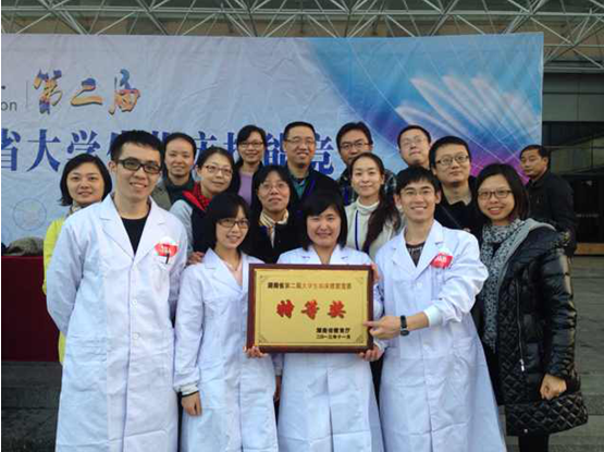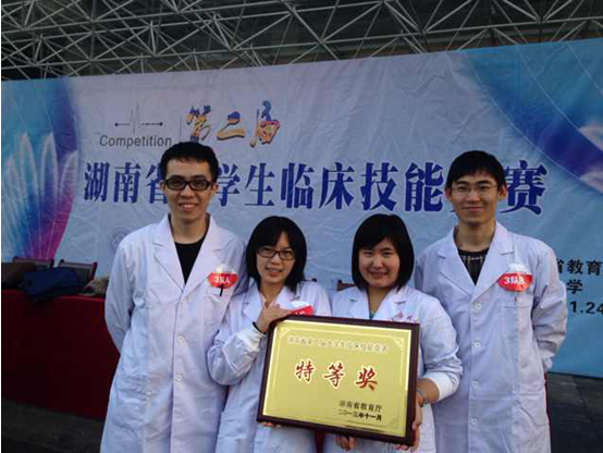11月24日,由湖南省教育厅主办、南华大学承办的第二届湖南省高等医学院校大学生临床技能竞赛在南华大学附二医院进行,全省8所高等院校的14支队伍参赛,中南大学3支队伍分别来至湘雅医院、湘雅二医院和湘雅三医院。由曹旭、袁晶晶、陈宇乔、靳翠红4名同学组成的我院代表队表现出色,经过激烈角逐,荣获特等奖。