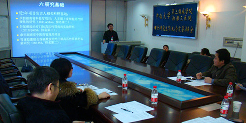 2014年湖南省博士研究生创新项目评审对象为提交申请的2012级、2013级全日制全脱产在读博士研究生,本次申报湖南省科研创新项目的博士生共四人,分别为袁腊梅(病理与病理生理学)、李莹(内科学)、黄湘俊(病理与病理生理学)、繆汝佳(内科学)。申请人结合PPT在8分钟内,从项目研究背景和意义、方法、内容、创新性、前期的工作基础以及预期的科研成果进行了详细的汇报展示。评审专家们针对博士生们申请的项目,从申报项目的研究背景和意义、创新性、内容和方法、可行性力五个方面进行综合评审和评分,并对4位同学的项目汇报进行了精彩点评,对项目选题的创新性和可行性表示赞赏,同时也指出有些项目在科研设计不够严谨、研究方法还存在的不足,并提出了宝贵的建议进一步提升科研思维能力,帮助他们更好地完善标书的撰写。