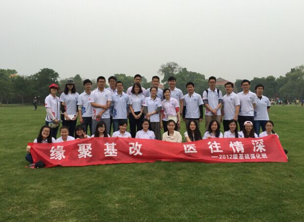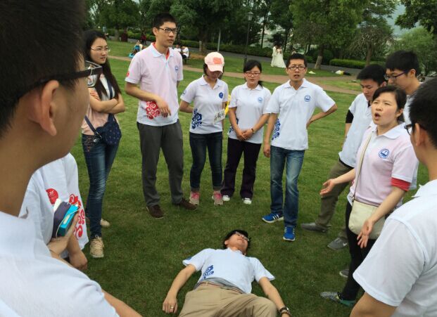 “我们在户外运动时发现了身边突然有人昏倒在地,不省人事,我们该怎么办呢?”——“判断意识、脉搏、呼吸”——“胸外按压”——“开放气道!”——“人工呼吸!”同学们都用已有的知识进行回答,2015年4月18日,在长沙橘子洲,肾内科刘妍和消化内科刘芬两位老师带领30名2012级基础强化班学生,学习户外活动中常见问题的处理方法。其中重点就人工心肺复苏术以及在操作时需要注意的事项和要点进行了详细的讲解,并以班长为模特进行示范,首先要判断患者是否清醒,确定患者的颈动脉搏动及呼吸是否存在,若已消失须呼救拨打120,并争取黄金时期对患者进行有效的心肺复苏术操作,5个循环后判断患者是否恢复呼吸脉搏。