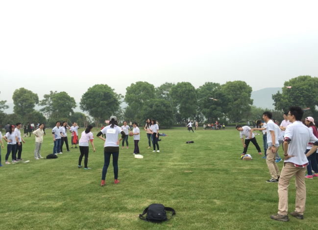 学习结束后,大家一起在大草地上开始了增强凝聚力的团队活动,躲避球、萝卜蹲与撕名牌,两位老师也参与其中,其乐融融。尤其是在撕名牌活动,大家都发挥团队的力量,两个组组长运筹帷幄,制定策略,攻守兼备,在奔跑与对抗中不时迸发一阵阵欢呼与雀跃,为这次师生交流活动画上了圆满的句号。