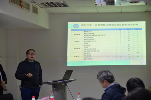 当日下午,来自湖北16家基层医院肾内科及血透室的20余名医生护士团队来院学习。血液净化中心主任王建文带领大家参观了血液净化中心以及腹膜透析中心,并讲述了肾内科及血透室的发展历程及目前的学科优势。就科室开展的新技术,王建文讲述了课题《双重血浆置换及免疫吸附在临床中的应用》,详细分享了科室双重血浆置换及免疫吸附等新技术开展的状况及未来展望。