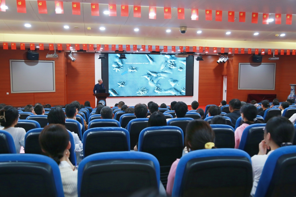 吕奔主持新湘雅国际学术交流会。Mikael Karlsson带来了题为《Immunotherapy for Cancer by Antibody targeting of Macrophages》的精彩讲座。他从对巨噬细胞表面清道夫受体MARCO的探索切入,通过阐述其通过增加巨噬细胞代谢使M2型巨噬细胞向M1型转变,可招募和激活NK细胞增强肿瘤细胞杀伤作用,并增强免疫检查点抑制疗效,进一步提出了直接激活NK细胞的阻断免疫检查点抑制剂耐药的新方法,并以此为基础展开探讨了当代免疫学研究的前沿和重要议题。学术交流会议现场座无虚席,交流环节中多位师生与Mikael Karlsson进行了互动交流,探讨学术观点,现场气氛精彩而热烈。