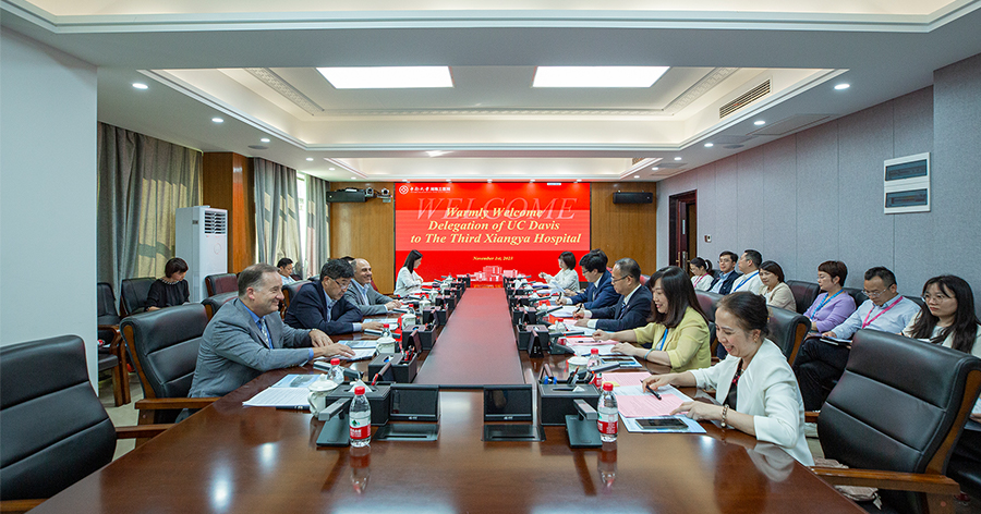 11月1日下午,美国南加州大学戴维斯分校医学中心副院长Mohamed Ali、医疗总监Andrew Wong、国际合作部主任Hong Liu和临床转化中心副主任Nicholas Kenyon一行四人到访中南大学湘雅三医院。医院院长江泓在综合楼三楼一会议室亲切会见来宾,党委委员、副院长欧阳文、朱利勇、左笑丛参加。中南大学国际合作处处长殷刚作为特邀嘉宾出席。