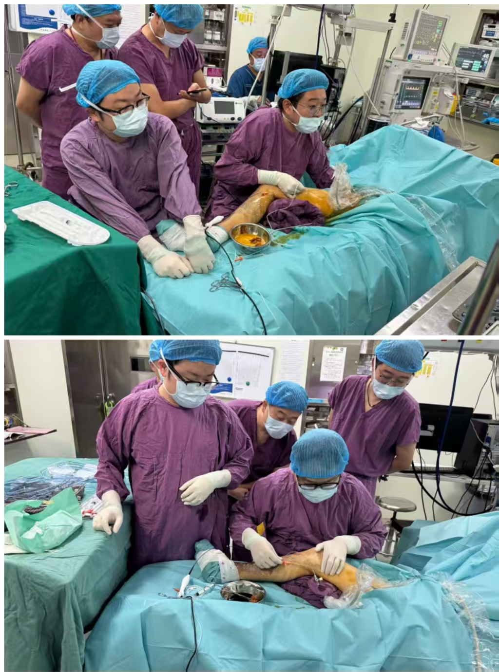 医院血管外科团队随后进行了五台下肢静脉曲张手术演示。手术涵盖了不同的术式选择与技术要点,直观展示了团队规范、精湛的手术技巧。每台手术均安排了带教环节,并有数位来自基层医院的血管外科同仁进入手术室近距离观摩学习。这种“沉浸式”的教学模式,得到了与会者的一致好评,有效促进了先进治疗技术的下沉与普及。