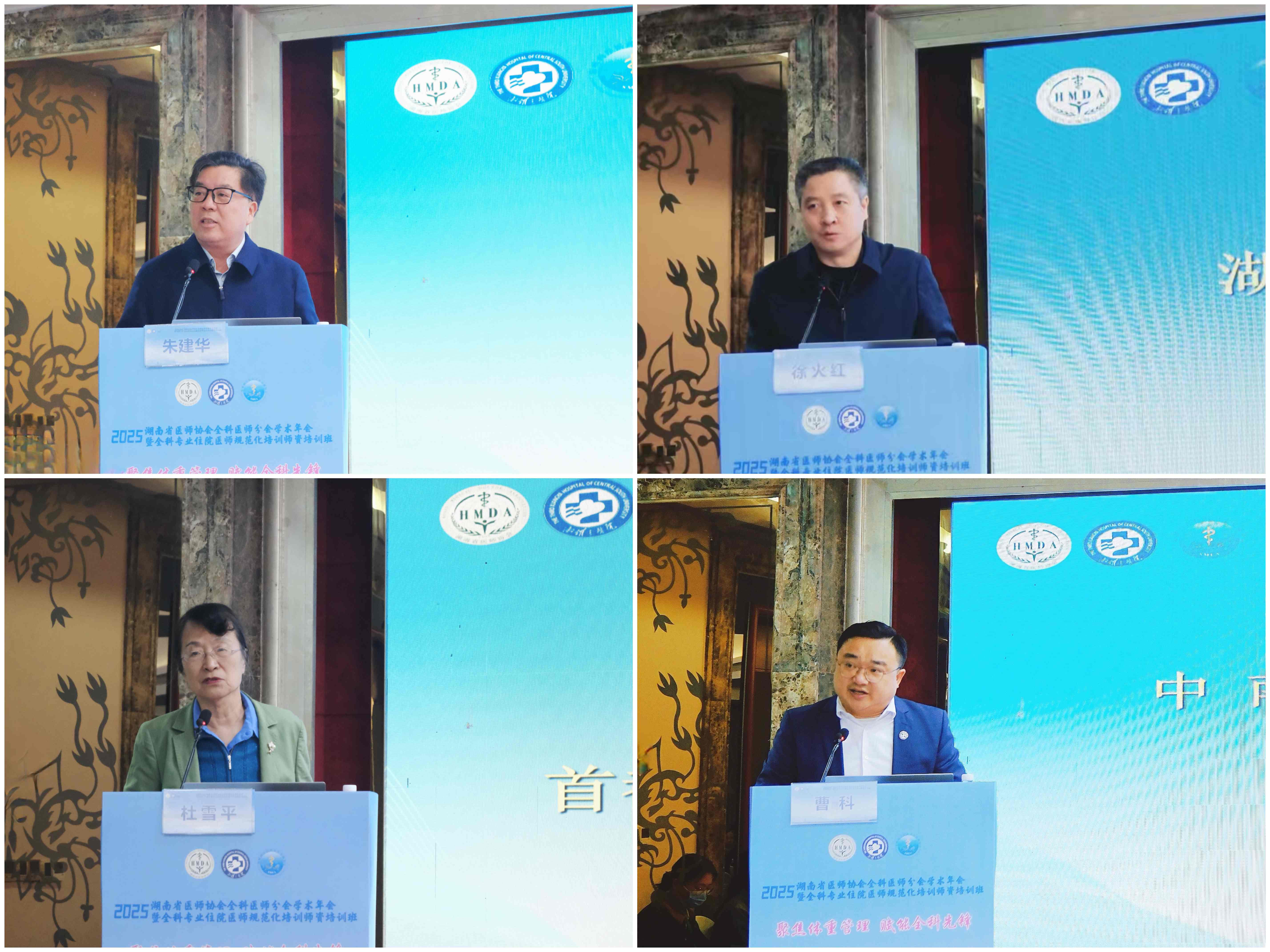 中南大学湘雅三医院副院长曹科在致辞中表示,医院将全力培养更多具备“防、治、管”综合能力的全科守门人。中国医师协会全科医师分会名誉会长杜雪平教授也高度肯定了湖南省及中南大学湘雅三医院全科医学的发展成效,他提出要以“过程规范化、结果同质化”为目标,强化师资建设,筑牢育才根基,进一步提高全科带教老师的总体素质,加强临床一线对全科医生进行传、帮、带的意识和能力。湖南省医师协会朱建华秘书长提出,本次年会将聚焦“师资提质”“体重管理”“医防融合”三大攻坚方向,深入探讨全科医学教育的新理念、新方法,湖南省医师协会也将持续发挥桥梁纽带作用,推动全科医学从“量”的积累向“质”的提升和转变。湖南省卫健委科教处徐火红副处长强调,全科医生作为居民健康的“守门人”和分级诊疗的“枢纽”,肩负“筑牢基层网底、推动医防融合、促进医疗公平”三大使命。因此,期望全科医学领域的同志付出更多的努力。