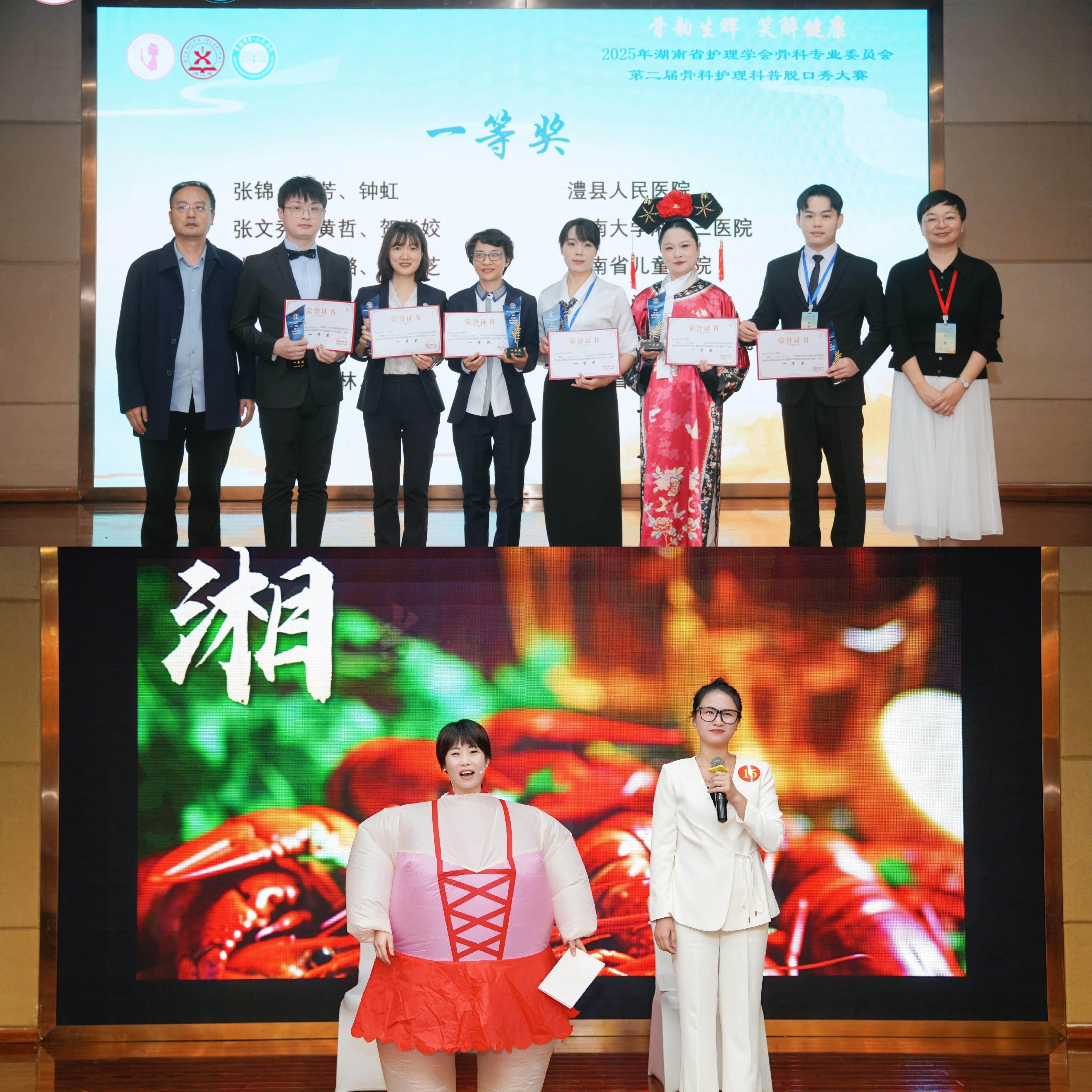 10月30日至11月1日,2025年湖南省护理学会骨科专业委员会学术年会暨湖南省骨科护理科普脱口秀大赛在湖南常德举行。新湘雅骨科护理团队以专注与创新为笔,在大会舞台上书写了属于护理人的答卷。从幽默生动的脱口秀到严谨扎实的专题汇报,她们用专业诠释责任,用温度传递力量,赢得与会专家的一致好评。
