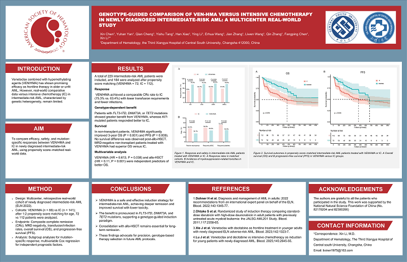 近日,中南大学湘雅三医院血液内科李昕教授团队的三项研究成果入选第67届美国血液学会年会壁报展示。作为全球血液病领域最具影响力的学术会议,此次入选彰显了团队在血液肿瘤精准诊疗方面的国际前沿实力。