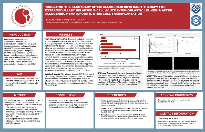 对于异基因造血干细胞移植后出现髓外复发的B细胞急性淋巴细胞白血病患者,传统治疗手段疗效有限。博士研究生刘蕊的研究取得了突破性进展:团队应用异体CD19 CAR-T细胞疗法治疗7例此类高危患者,其中6例获得完全缓解。研究首次证实异体CAR-T细胞能够主动穿越血脑屏障,在脑脊液中持续发挥抗肿瘤作用,最长随访已超过3年,为这一难治情况带来了新的治愈希望。