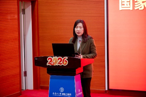 项目宣讲环节,中南大学国际合作与交流处项目办主任黄彦凝博士介绍了学校国家公派留学项目整体情况,重点解读了国家留学基金委公派项目现行政策。医院国合办主任雷俊教授则对医院2026年精准医学创新型人才国际合作培养项目的选派流程及申报要求作全面讲解。