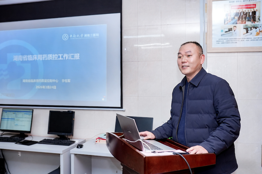 3月24日,深圳市临床药学质量控制中心主任周本杰、深圳市卫健委医政医管处主任刘新宇带队深圳十九家医院的药学专家一行共21人来院药学部进行参观交流。医院副院长、临床药学学科带头人左笑丛,药学部主任彭向东,湖南省临床用药质量控制中心主任刘世坤及药学部相关部门负责人共同参与会议。会议由彭向东主持。