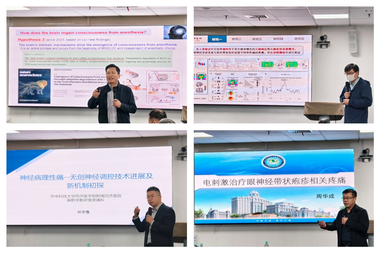 学术报告环节,四位国内疼痛领域的顶级专家轮番登台,从不同维度全视角解析了神经病理性疼痛的精准诊疗,系统展示了该领域的最新研究成果:南方科技大学疼痛医学中心主任、国家杰青宋学军教授深入剖析了“麻醉大脑如何重新获得意识”的基础机制;中国科学院心理研究所、国家优青胡理研究员结合前沿科技,分享了基于神经影像的先进疼痛评估和干预手段;华中科技大学同济医学院附属同济医院疼痛科主任田学愎教授,探讨了“神经病理性疼痛-无创神经调控技术进展及新机制初探”;哈尔滨医科大学附属第四医院疼痛科主任周华成教授紧贴临床需求,聚焦“半月节与眶上神经电刺激治疗眼神经PHN”,分享了精准神经电刺激的临床干预策略。