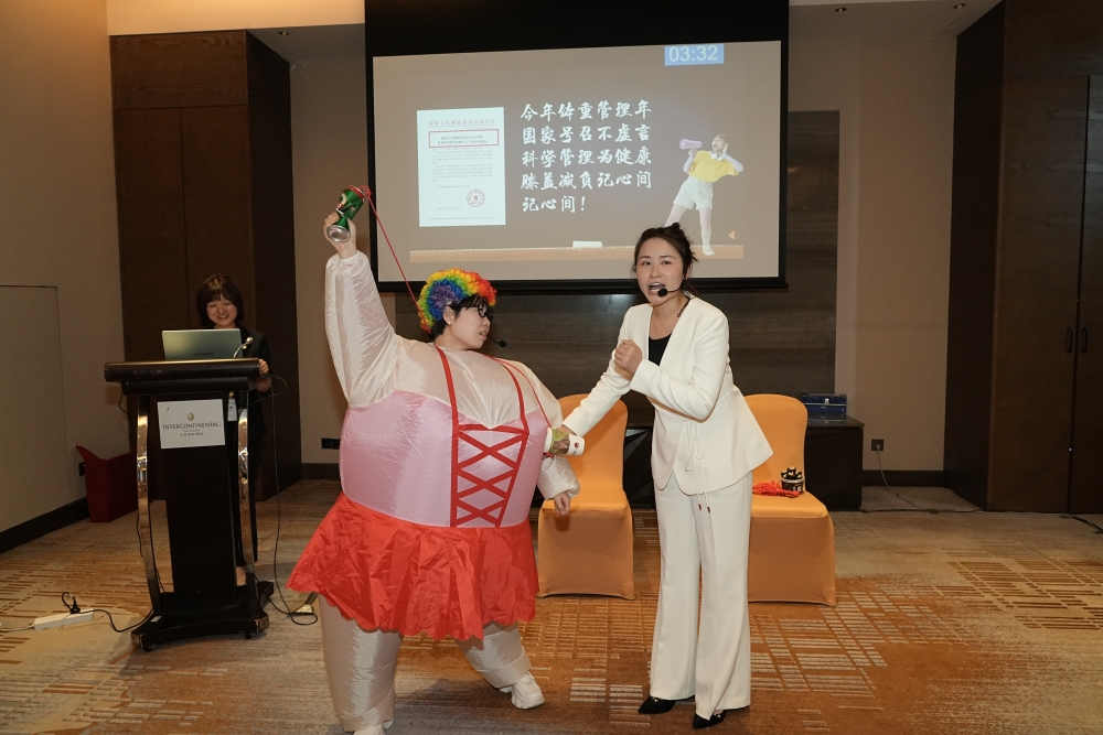 张文秀在护理与康复专场担任主持,并受邀加入“保膝护航圆桌派”,围绕“多学科协作下的保膝全周期管理”主题,分享湘雅三医院保膝管理经验。黄哲主管护士分享了全病程管理在保膝治疗中的应用,从术前精准评估、术中精细化护理、术后个体化康复到长期健康指导,全方位展现了医院在保膝护理与康复管理的创新实践与优质经验,为亚洲保膝护理体系建设提供重要参考。此外,黄哲、贺华姣带来精彩的保膝科普秀,以通俗易懂的语言、幽默风趣的表演形式,将专业医学知识转化为大众易懂的健康常识,助力提升公众膝关节健康素养,获现场观众与专家一致好评。