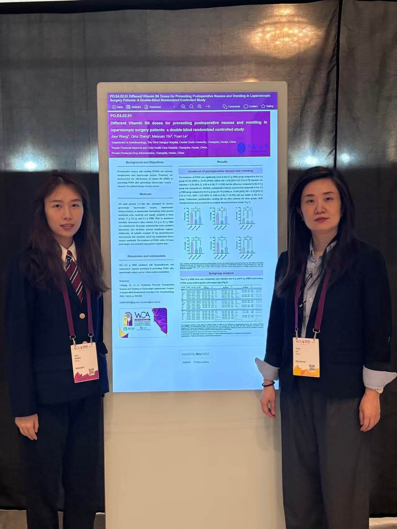 2026年4月15日至19日,湘雅三医院麻醉科乐园教授团队受邀参加第19届世界麻醉医师大会(World Congress of Anaesthesiologists,WCA),并在大会分会环节进行了学术成果展示与交流。