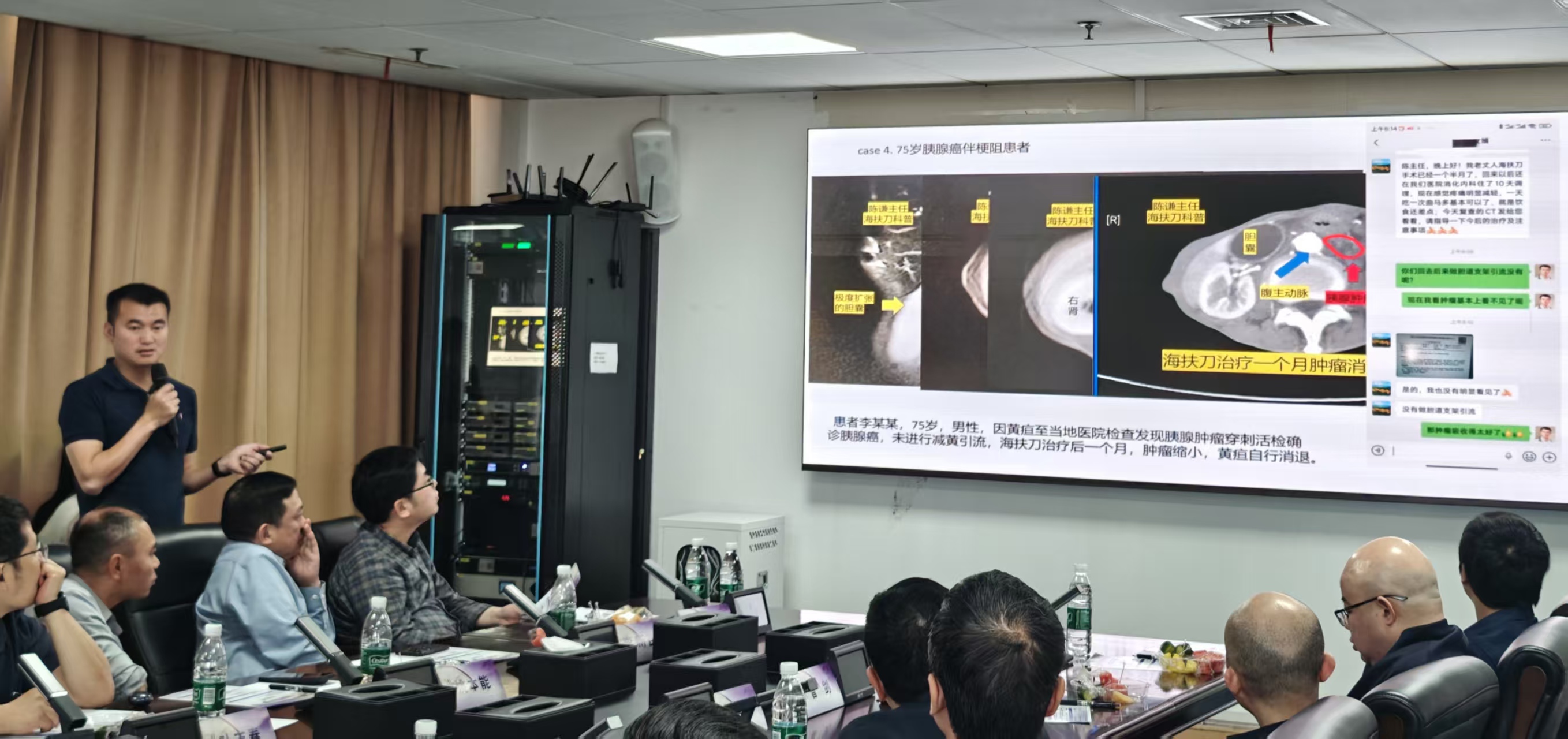 李志强副研究员作专题学术报告,围绕创新化疗与精准靶向方向,系统梳理晚期胰腺癌全身治疗最新研究进展,总结当前主流药物治疗策略、临床适用场景及前沿探索方向,为本次联合研究的系统药物治疗环节提供理论依据。随后,杭州中西医结合医院海扶中心主任陈谦教授结合多年临床工作经历,分享外中心海扶刀治疗肝胆胰肿瘤典型病例,交流无创消融技术实操要点、围治疗期管理经验及多学科协作体会,为与会人员提供跨中心实践参考。