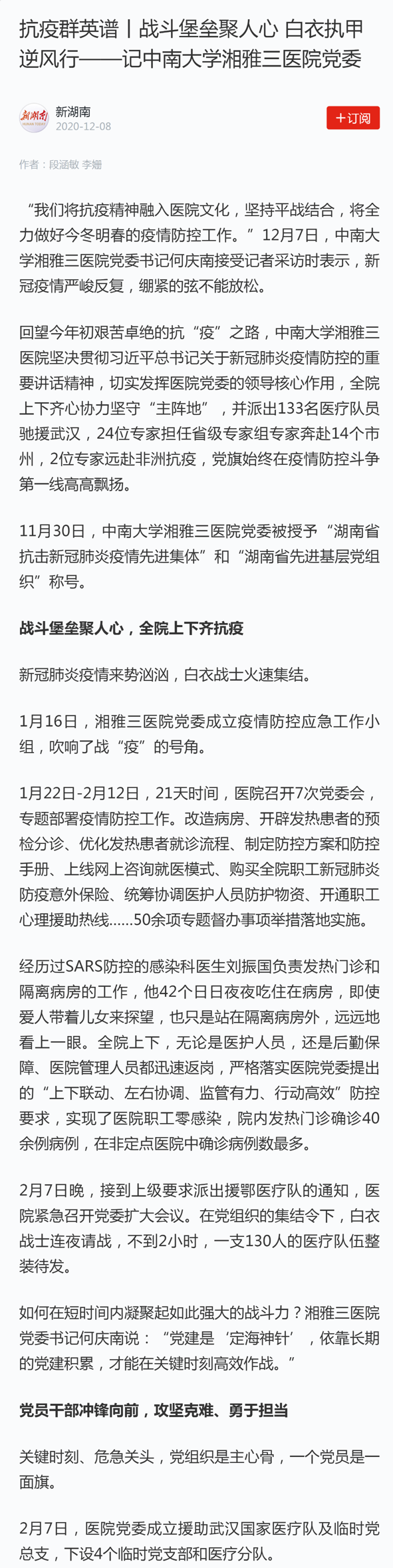 人民网 | 新华网 | 中华人民共和国国家卫生健康委员会 | 中华人民共和国教育部 | 湖南省政府 | 红网 | 湖南省卫生健康委员会 | 湖南省教育厅 | 中南大学 | 湘雅医学院 | 湘雅医院 | 湘雅二医院 | 协和医院 | 华西医院 | 西京医院 | 瑞金医院 | 复旦中山医院 | 武汉同济医院 | 中山医院