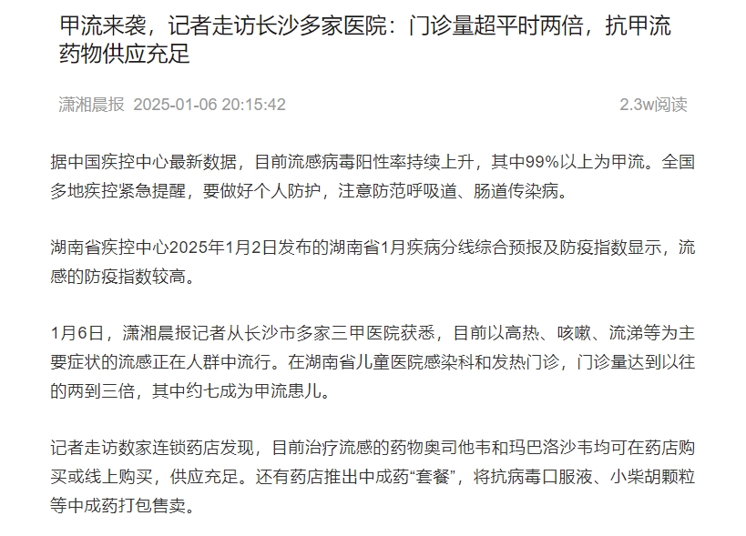 [上一篇] 潇湘晨报:甲流来袭,记者走访长沙多家医院...