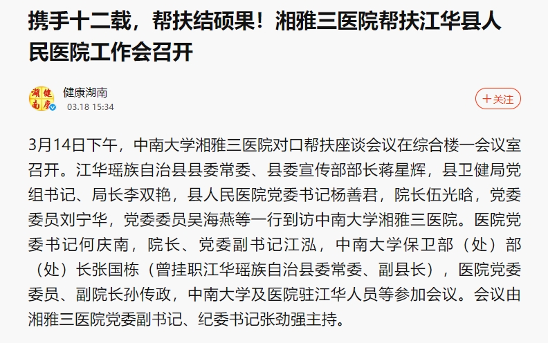 人民网 | 新华网 | 中华人民共和国国家卫生健康委员会 | 中华人民共和国教育部 | 湖南省政府 | 红网 | 湖南省卫生健康委员会 | 湖南省教育厅 | 中南大学 | 湘雅医学院 | 湘雅医院 | 湘雅二医院 | 协和医院 | 华西医院 | 西京医院 | 瑞金医院 | 复旦中山医院 | 武汉同济医院 | 中山医院