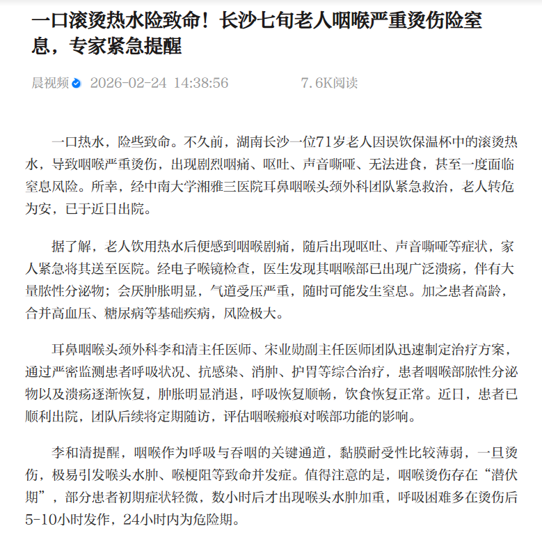 [上一篇] 长沙晚报网页版:[掌上长沙]老人喝滚烫热水...