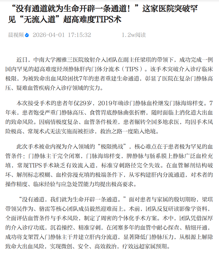 [下一篇] 红网时刻:湘雅三医院突破罕见“无流入道”...