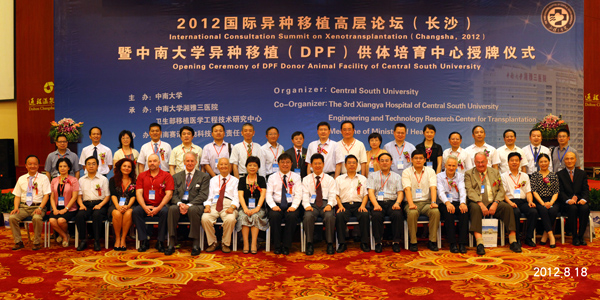 8月18—19日,2012国际异种胰岛移植高层论坛(长沙)暨中南大学异种移植(DPF)供体培育中心授牌仪式在宁乡通程温泉大酒店举行。国家卫生部国际合作司王立基副司长、医管司周军副司长,湖南省科技厅姜郁文副厅长,湖南省卫生厅陈亚莎副厅长,中南大学李桂源副校长,中共宁乡县委副书记周辉等领导出席论坛开幕式并发表讲话。原中国医学科学院院长、中国协和医科大学校长刘德培院士,华中科技大学器官移植研究所所长夏穗生教授等专家参加论坛。李桂源副校长为中南大学异种移植(DPF)供体培育中心授牌。