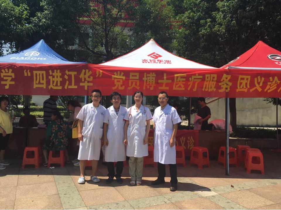6月初,医院选拔出一支由感染科黄芳、心内科李安莹、急诊科刘怀政、神经外科刘宇、皮肤科康健医师组成的技术过硬的医疗支援队,奔赴湘南江华县瑶族人民医院进行扶贫工作。支援队结合县医院实际情况,通过病房查房、指导危重症患者抢救、协同坐诊、授课、疑难病例讨论、现场义诊等多种形式的支援活动,帮助医护人员提高医疗技术水平,规范常见疾病的诊疗措施,强化了医护人员对疑难杂症的诊疗理念,改善了县医院基本医疗水平和公共卫生服务能力。
