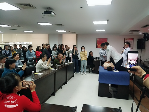 随后,湘雅三医院120急救中心的李梅、康晓艳老师进行了心肺复苏现场教学,机关工作人员也踊跃参与其中。