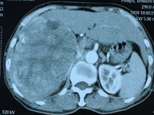 术前罗宏武教授团队通过充分的术式预演,充分讨论了术中可能遇到的各种困难及解决方案,手术如期进行。罗宏武主任在张辉主治医师、涂彪住院医师的协助下,在手术空间不够的情况下,安全高质完成,手术历时4小时,将含巨大肿瘤在内的右半肝完整切除,术中失血量约为500毫升。术后患者感觉很轻松,自述像“没有做过手术一样”,按EARS进入快速康复程序,第二天就下床活动,并进食半流质。