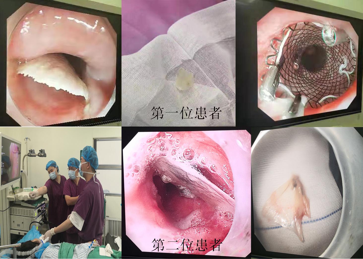 据刘少俊副教授介绍,两位患者的食管异物崁顿的地方均在大血管旁,穿透食管壁,并向腔外延伸,取异物过程无疑是在刀尖上跳舞,可能会划伤大血管、造成二次损伤,甚至可能危及生命。但考虑两位患者都还年轻,因为鱼骨而带来开胸手术会给他们带来极大的创伤及痛苦。因此,他毅然选择了对患者创伤小,但难度和风险极大的内镜下取异物手术。刘少俊副教授也提到,即使鱼骨穿破血管,可采取内镜下取异物同时联合血管外科团队行血管覆膜支架的置入,为患者的安全保驾护航。最终,在团队的一起努力下,顺利取出异物,化险为夷。刘少俊副教授也提醒大家:吃饭应细嚼慢咽、餐时少讲话、切勿吃得过急。一旦发生食道异物,避免强行用米饭、馒头等方法将异物吞下,应尽早到医院进行专业处理。