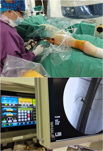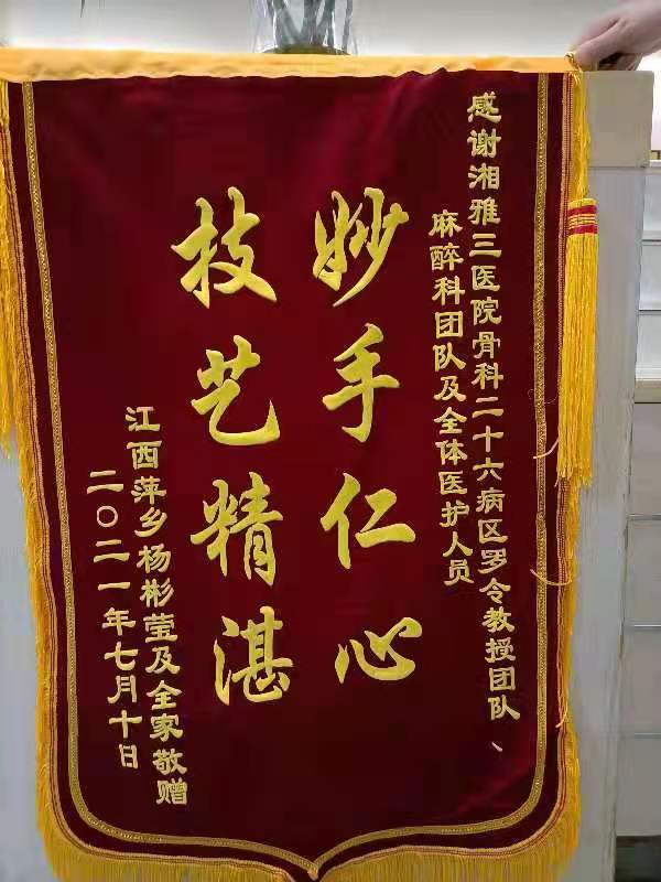 7月3日,怀揣着希望,杨奶奶一家人慕名来到了中南大学湘雅三医院创伤骨科就诊。罗令教授了解情况后,紧急启动了老年髋部骨折多学科合作(Multiple Disciplinary Team,MDT)团队,为杨奶奶开通绿色通道,当日即行全院大会诊。在经过医院骨科、麻醉科、消化内科、心血管内科、手术室及护理团队充分、完善的术前准备后,罗令教授全程穿戴30余斤重的铅衣,利用独创的转子间骨折治疗的经验,全程在G臂透视下进行定位,大大缩短手术时间,手术用时仅21分钟,手术总切口长度不足5公分,出血量不足30ml,高质量完成了骨折内固定手术。患者术后恢复情况良好,第二天即下地行走,患者本人及家属对手术效果非常满意。术后,杨奶奶紧紧抓着罗令教授的手,反复念叨着说没有走错地方,感谢罗令教授团队的及时救治。